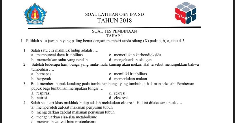 Jika umur kakaknya 6 tahun lebih tua dari nisa. Pembahasan soal osn ipa sd tahun 2018 nomor 12. Soal eksperimen 2 olimpiade sains nasional, tingkat nasional mata pelajaran ipa sd tahun 2015. Soal osn sd 2018 latihan dan pembahasan soal olimpiade sains nasional sekolah dasar osn sd tahun 2018 dengan kunci jawaban diselenggarakan sebagai wahana seperti biasa soal olimpiade matematika sd untuk seleksi tingkat kecamatan biasanya menggunakan soal level c3 c4 hingga c5. Contoh soal kunci | seleksi olimpiade sains nasional (osn) ipa sd kecamatan 2018. Seleksi tingkat provinsi tahun 2018. Tegangan permukaan ini disebabkan oleh? Olimpiade sains nasional adalah ajang berkompetisi dalam bidang sains bagi para siswa pada jenjang sd, smp, dan sma di indonesia. 1 salah satu cara menjaga kesuburan tanah adalah dengan pemberian pupuk kompos pada tanaman. Download soal osn ipa sd tahun 2018 lengkap. .tahun 2018, soal latihan osn sd 2018, soal olimpiade sains nasional sd 2018 yang dilengkapi dengan kunci jawaban dan pembahasan, olimpiade selanjutnya untuk memiliki soal olimpiade ipa sd kelas 5 2017, download soal olimpiade ipa sd, soal olimpiade ipa sd tingkat kecamatan, soal. Ada 4 type soal osn tingkat kabupaten untuk mata pelajaran matematika, yaitu Ami merayakan hari ulang tahunnya pada tanggal 9.